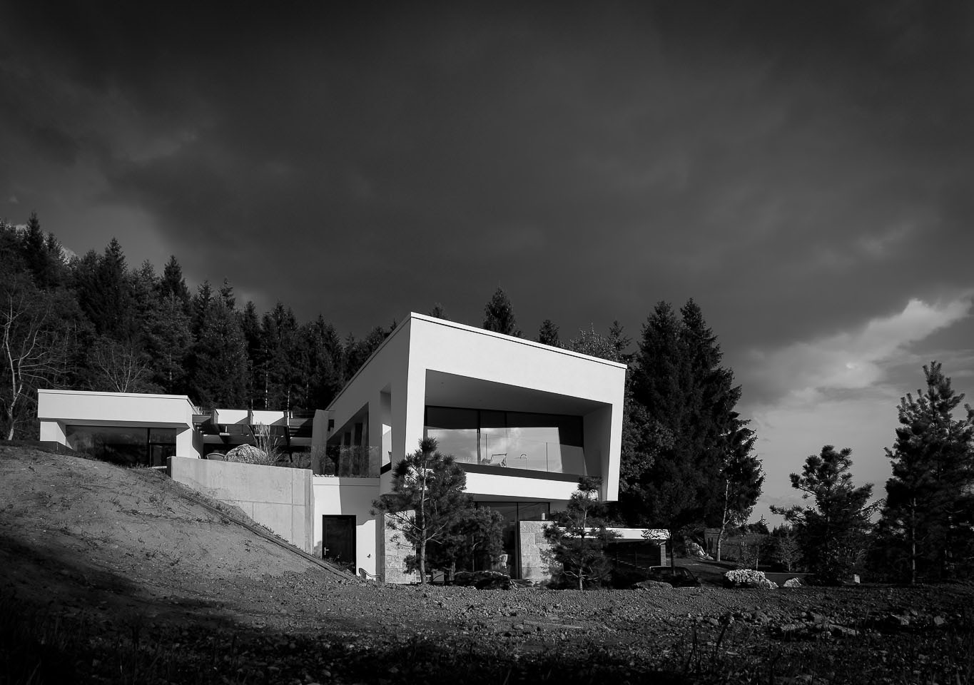 Architektur, wie sie weitgehend verstanden wird, beginnt daher nicht mit der Gestaltung einer Fassade. Erst wenn die Bedürfnisse des Wohnens erfüllt sind, wenn Räume definiert sind, lässt sich die Gestaltung der Gebäudehülle manifestieren. Form follows function. Ein strapaziertes Statement, das natürlich nur bedingt Gültigkeit hat. Grundstück und Lage geben Parameter vor, die großen Einfluss auf die Architektur haben. Aber letztendlich ist es der Raum, der die Qualität der Wohnhausarchitektur bestimmt.